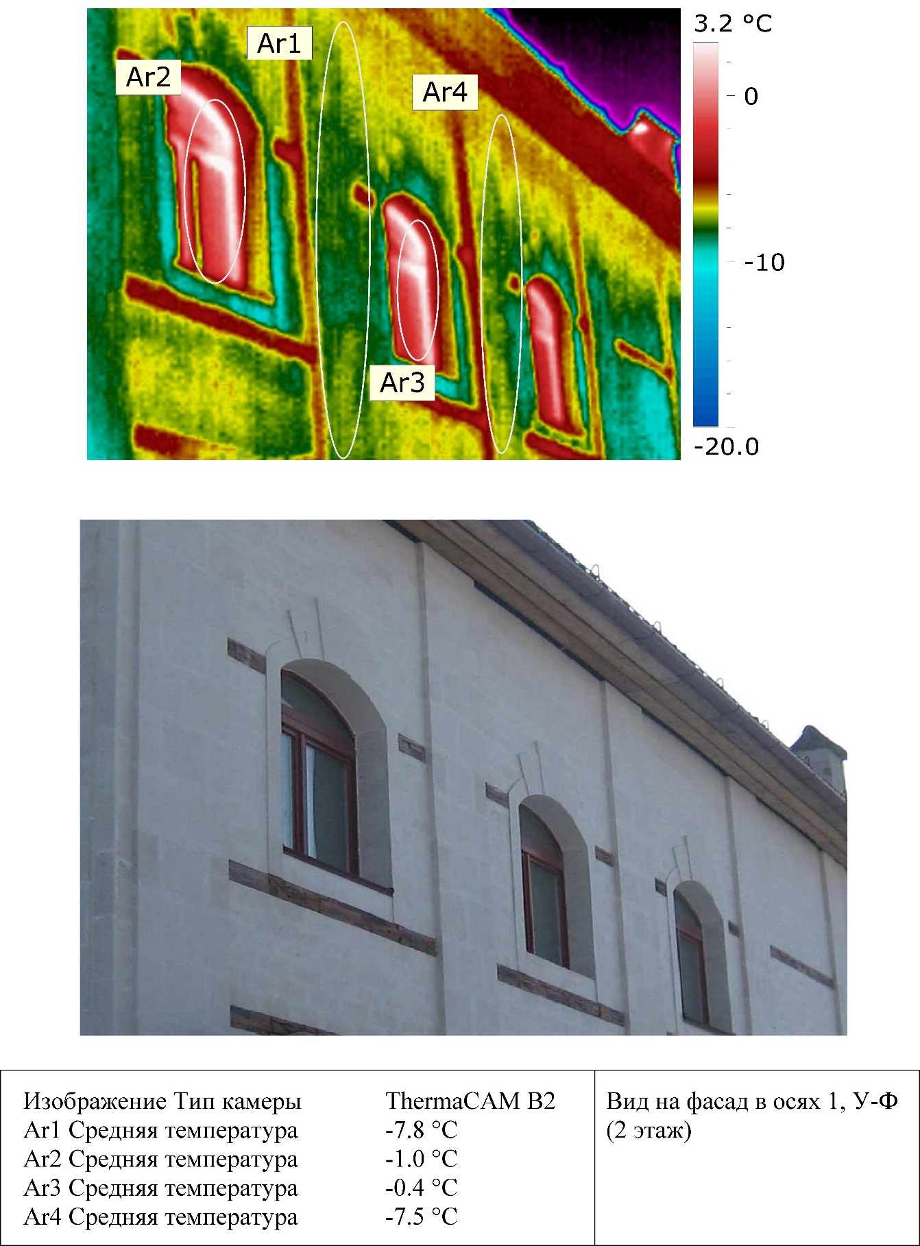 Результаты тепловизионного обследования фасадов здания гостиницы приведены в техническом заключении в виде фотоснимков и термограмм.