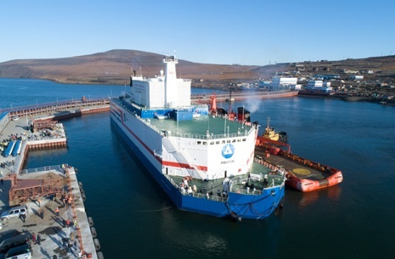Fig. 3. The floating nuclear thermal power plant “Akademik Lomonosov”. Source: https://www.rosatom.ru