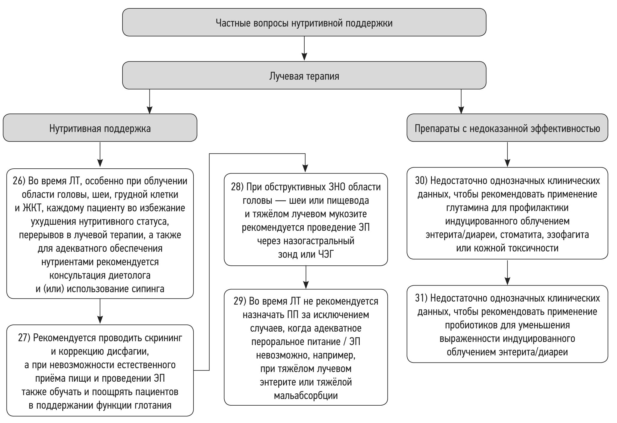 Рис. 4. Частные вопросы нутритивной поддержки: лучевая терапия. Модифицировано из [1].
