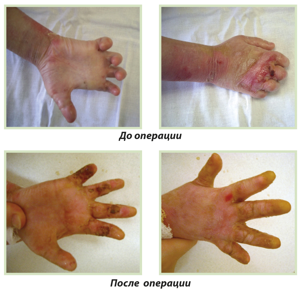 Рис. 2. Результаты операции по устранению сгибательных контрактур 2−5-го пальцев правой кисти у больного буллезным эпидермолизом