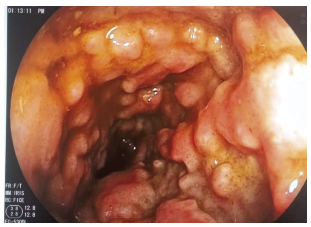 Fig. 1. Multiple plaques in the rectum.