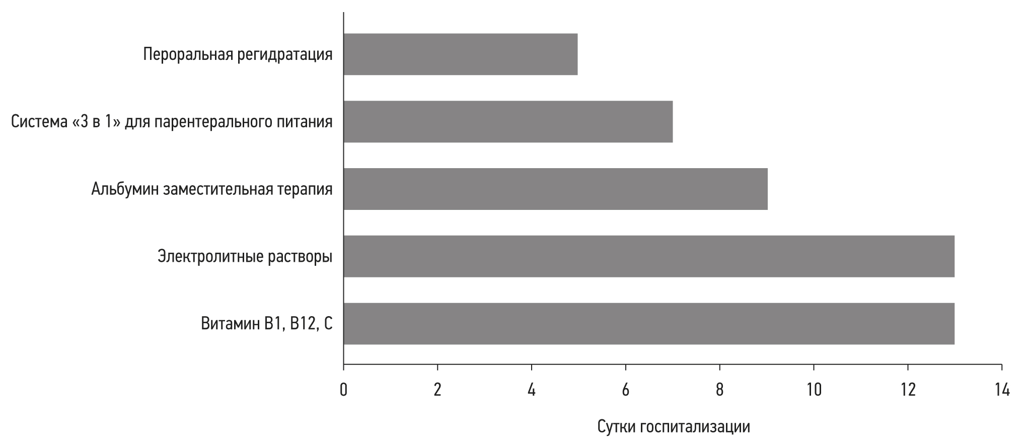 Рис. 2. Нутриционная поддержка с 1 по 13 сутки.