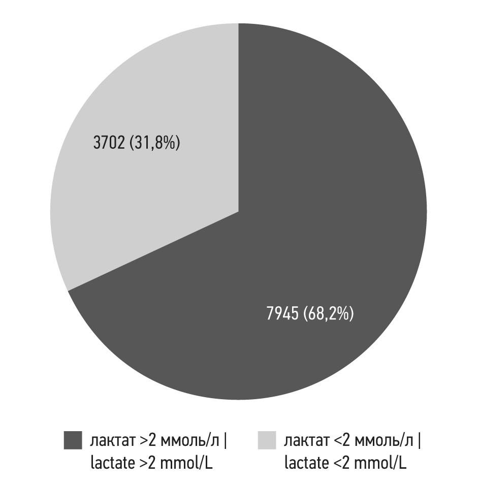 Рис. 2. Доля пациентов, госпитализированных с исходной гиперлактатемией, от общего числа вошедших в исследование ( n =11 647).
