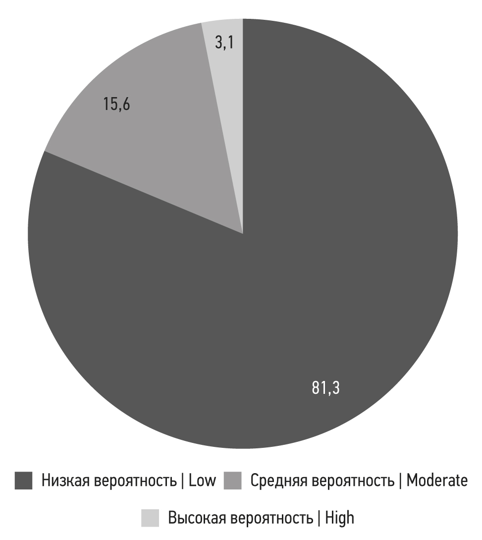 Рис. 1. Распределение больных по вероятности возникновения расстройств пищевого поведения (опросник EAT-26).