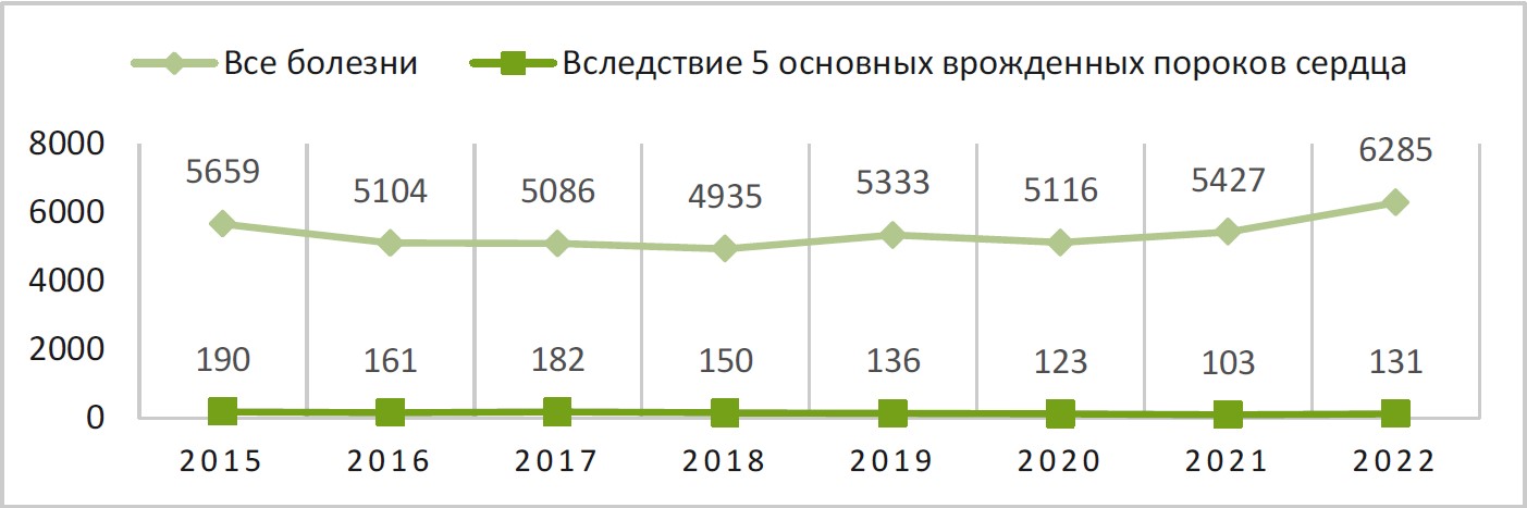 Вследствие всех болезней | Вследствие 5 основных ВПС | |||