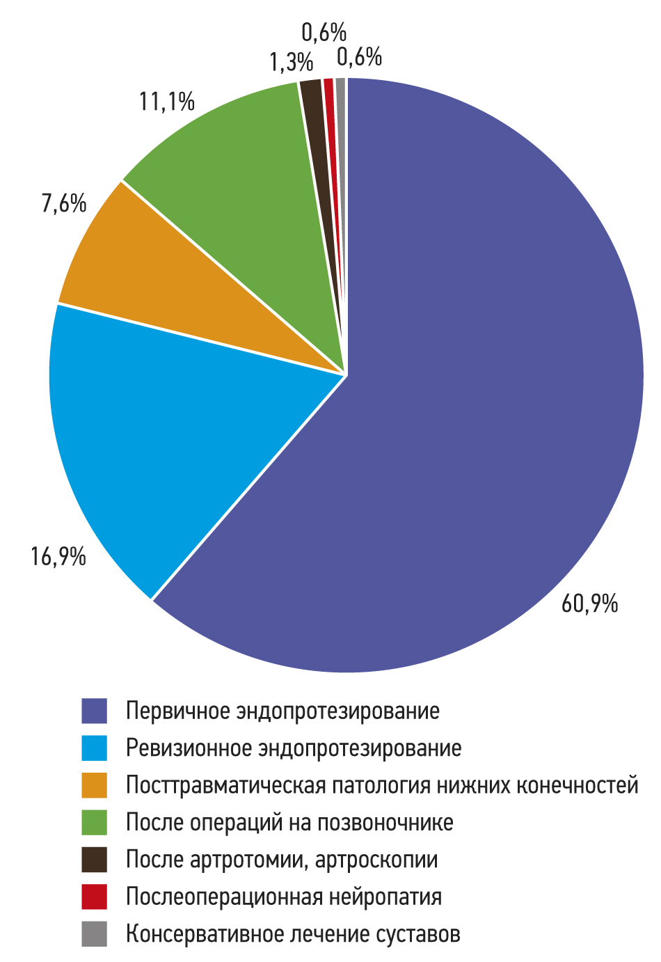 В единичных случаях пациенты получили курсы реабилитации после артротомии и артроскопии (в том числе одной ревизионной) по поводу послеоперационной компрессионно-ишемической нейропатии и консервативного лечения гонартроза и коксартроза (рис. 1).