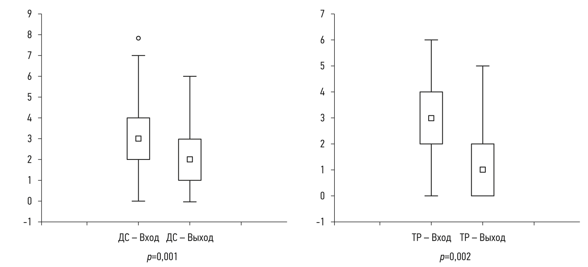 Table 6. Dynamics of the patients’ state in the DS and TR groups according to the Borg scale and to the European questionnaire for assessing the quality of life