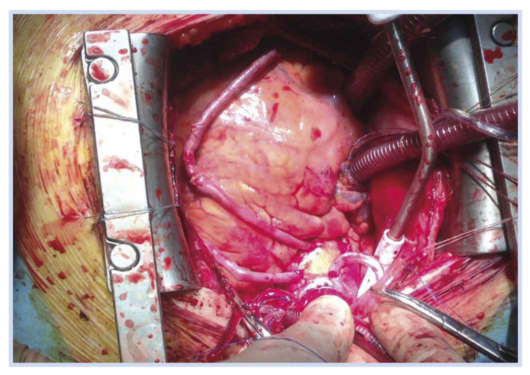 Рис. 1. Операционное фото, аутовенозное коронарное шунтирование