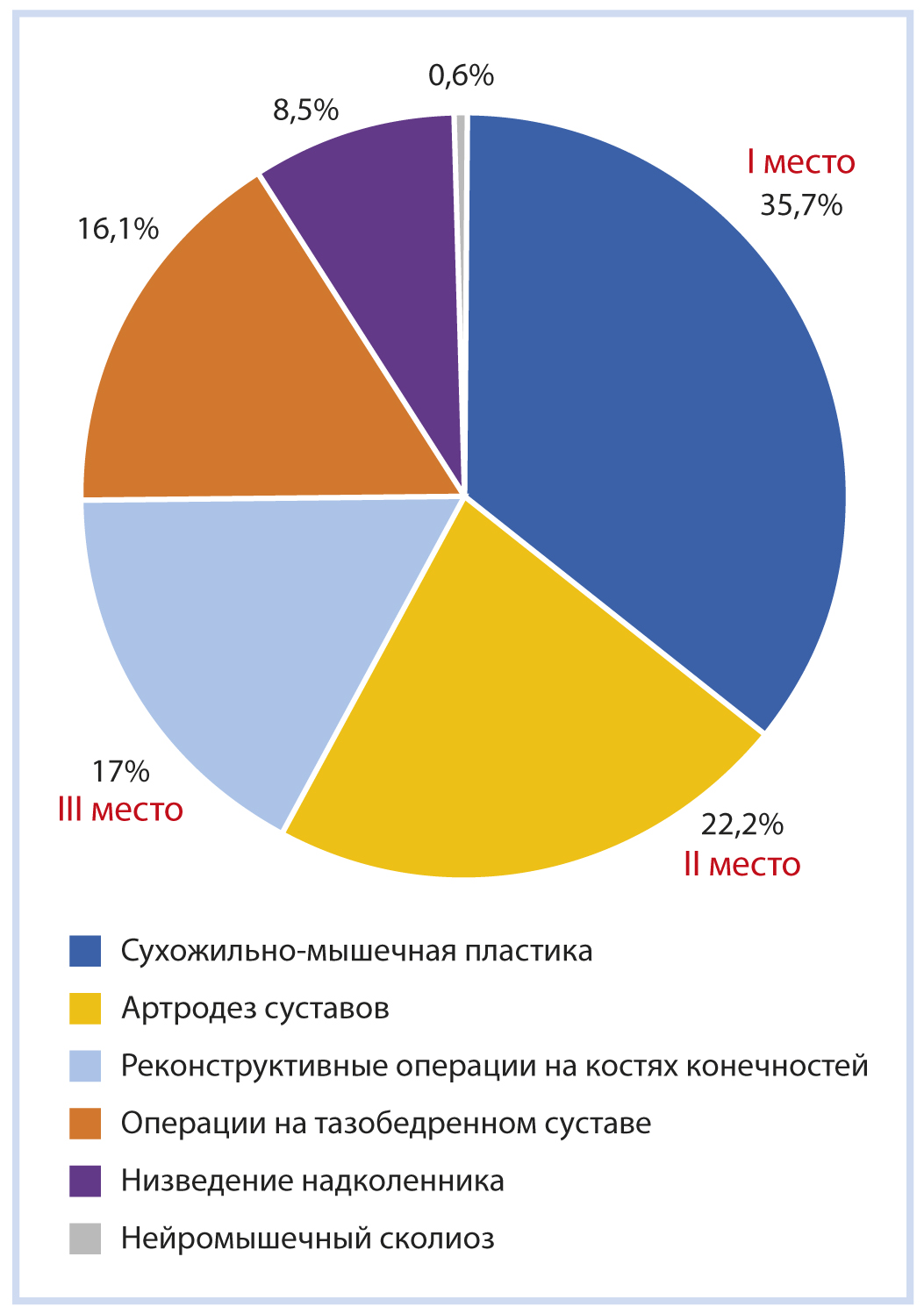 Рис. 2. Структура оперативных вмешательств детям с детским церебральным параличом в условиях Федерального центра травматологии, ортопедии и эндопротезирования Минздрава России в 2009–2018 гг.