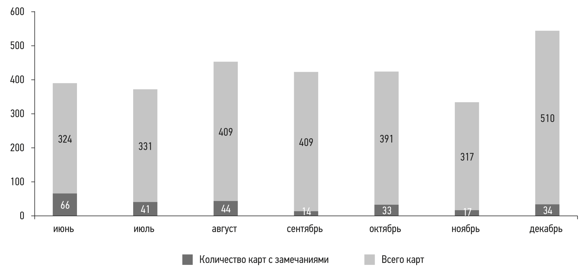 Рис. 2. Общая динамика количества карт стационарного больного с замечаниями за июнь–декабрь 2021 года.