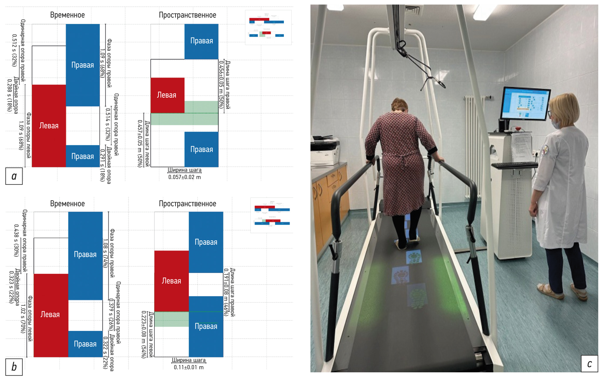 Заключение. Исследование стереотипа ходьбы у пациентов на многофункциональном комплексе C-Mill с биологической обратной связью может быть использовано при обосновании тактики лечения с последующим составлением индивидуального плана медицинской реабилитации для восстановления функции нижней конечности в послеоперационном периоде, полноценного контроля динамики лечения, профилактики падений, улучшения качества жизни пациентов.