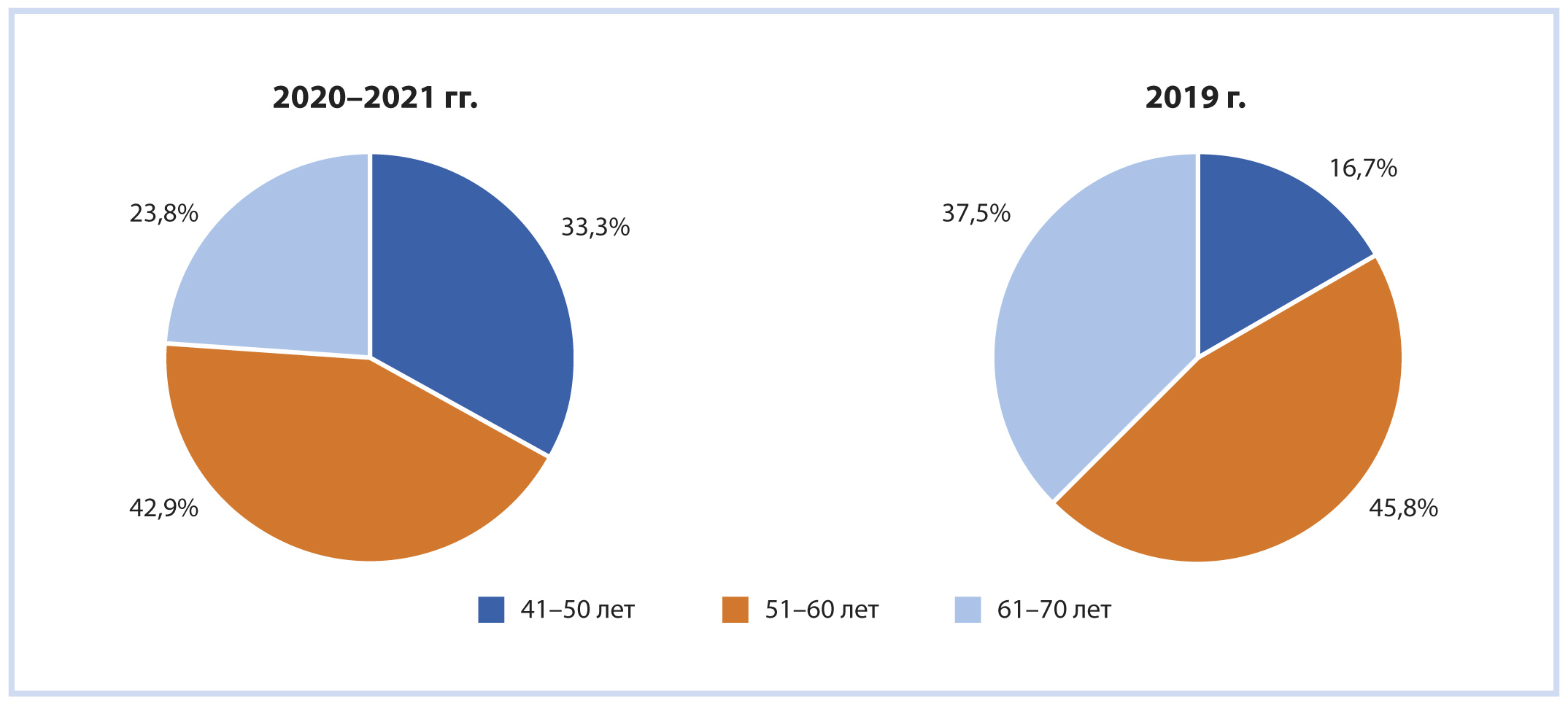 Рис. Распределение по возрасту в группах исследования (2020–2021 гг.) и сравнения (2019 г.).