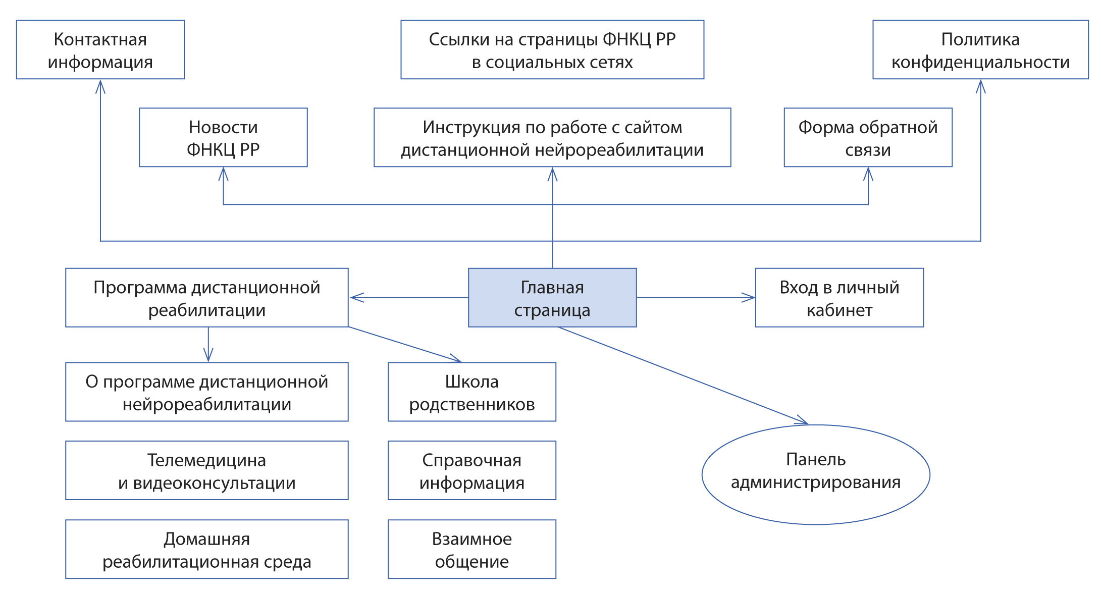 Обязательным компонентом Портала являются разделы «Контактная информация», «Программа дистанционной реабилитации» и «Справочная информация», где посетители имеют возможность определить задачи и возможности Портала, роль ФНКЦ РР, а также контакты для непосредственной связи с сотрудниками, курирующими данный Портал, и/или приемным отделением ФНКЦ РР по вопросам госпитализации в Центр.