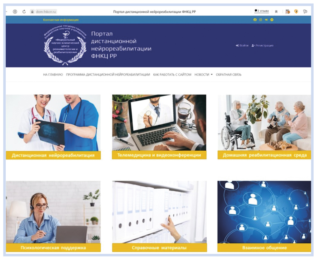 Реабилитация пациентов с хроническим нарушением сознания имеет продолжительный период, и отсутствие надлежащих реабилитационных мероприятий после выписки приведет к обнулению достигнутых в стационаре результатов. Именно поэтому родственники больного должны быть проинформированы о своих правах и возможностях, знать, что они не остались один на один в тяжелой жизненной ситуации, а имеют право на социальную и медицинскую помощь. В сети Интернет размещены сайты ведомств, где опубликована информация по получению той или иной поддержки. К числу таких ресурсов можно отнести сайты Министерства труда и социальной защиты Российской Федерации (http://mintrud.gov.ru), Департамента труда и социальной защиты населения города Москвы (http://dszn.ru), Пенсионного фонда Российской Федерации (http://pfr.gov.ru), портал государственных услуг Российской Федерации (http://gosuslugi.ru) и др. C целью непрерывной информационной медицинской поддержки для родственников, ухаживающих за больным, создан портал дистанционной нейрореабилитации ФНКЦ РР (далее — Портал). Суть дистанционной реабилитации — информационная поддержка граждан с использованием телемедицинских технологий. Для этого пользователю необходимо зарегистрироваться на Портале и получить доступ к видеоинформационным материалам по обслуживанию и уходу за пациентом, а также организации прямой связи с медицинским представителем с целью получения консультации и др.