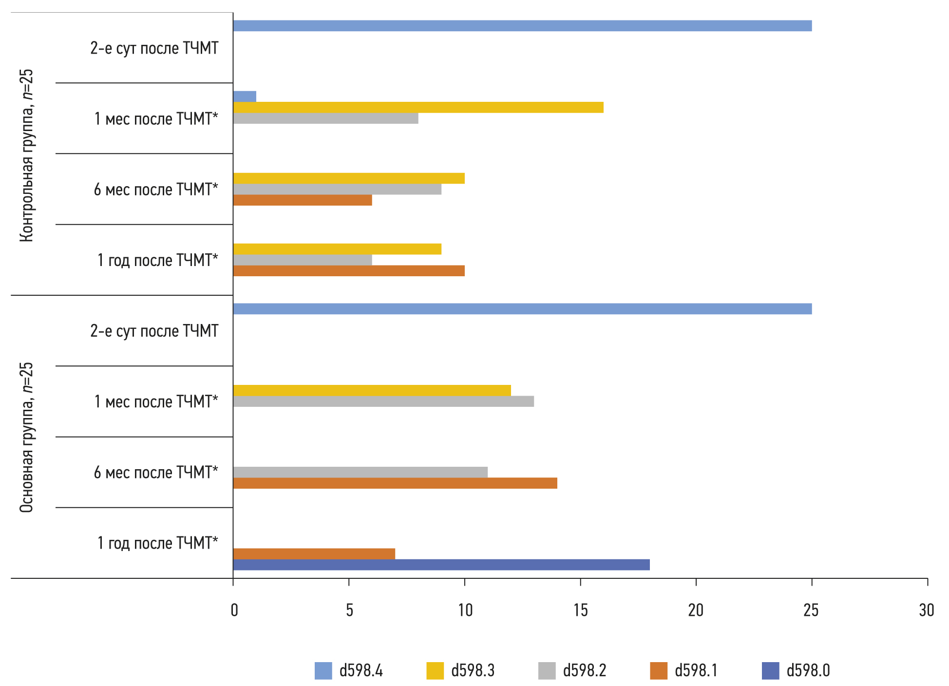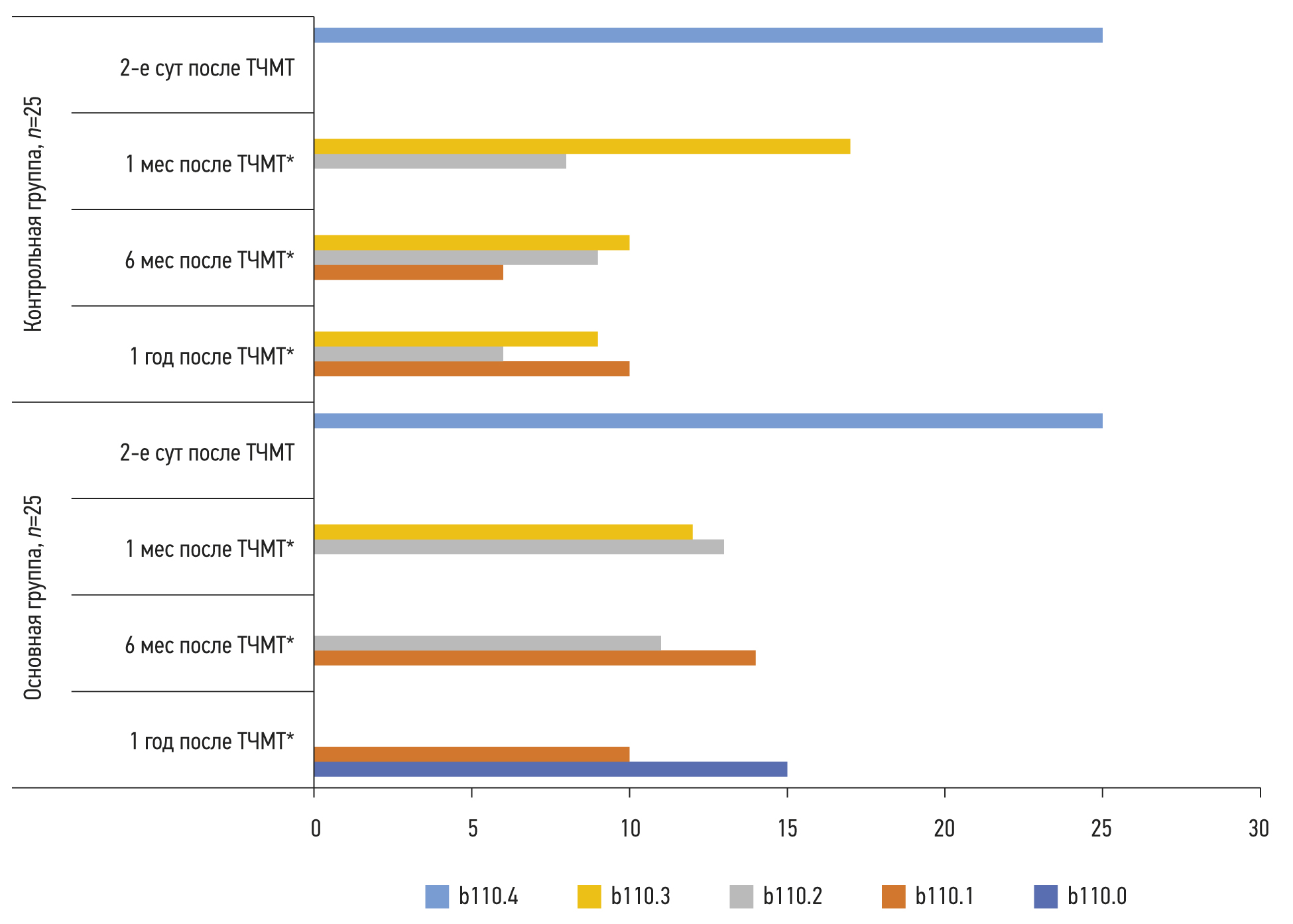 Примечание. * Различия показателей между основной и контрольной группами статистически значимы (p <0,05). ТЧМТ ― тяжёлая черепно-мозговая травма.