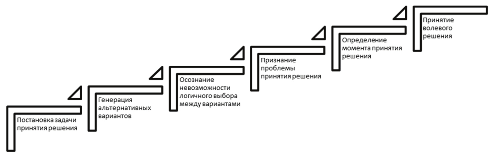 Волевое решение в данном случае является практической имплементацией свободы воли. Для принятия волевого решения в таком контексте необходимо выполнить следующие шаги (рис. 2):
