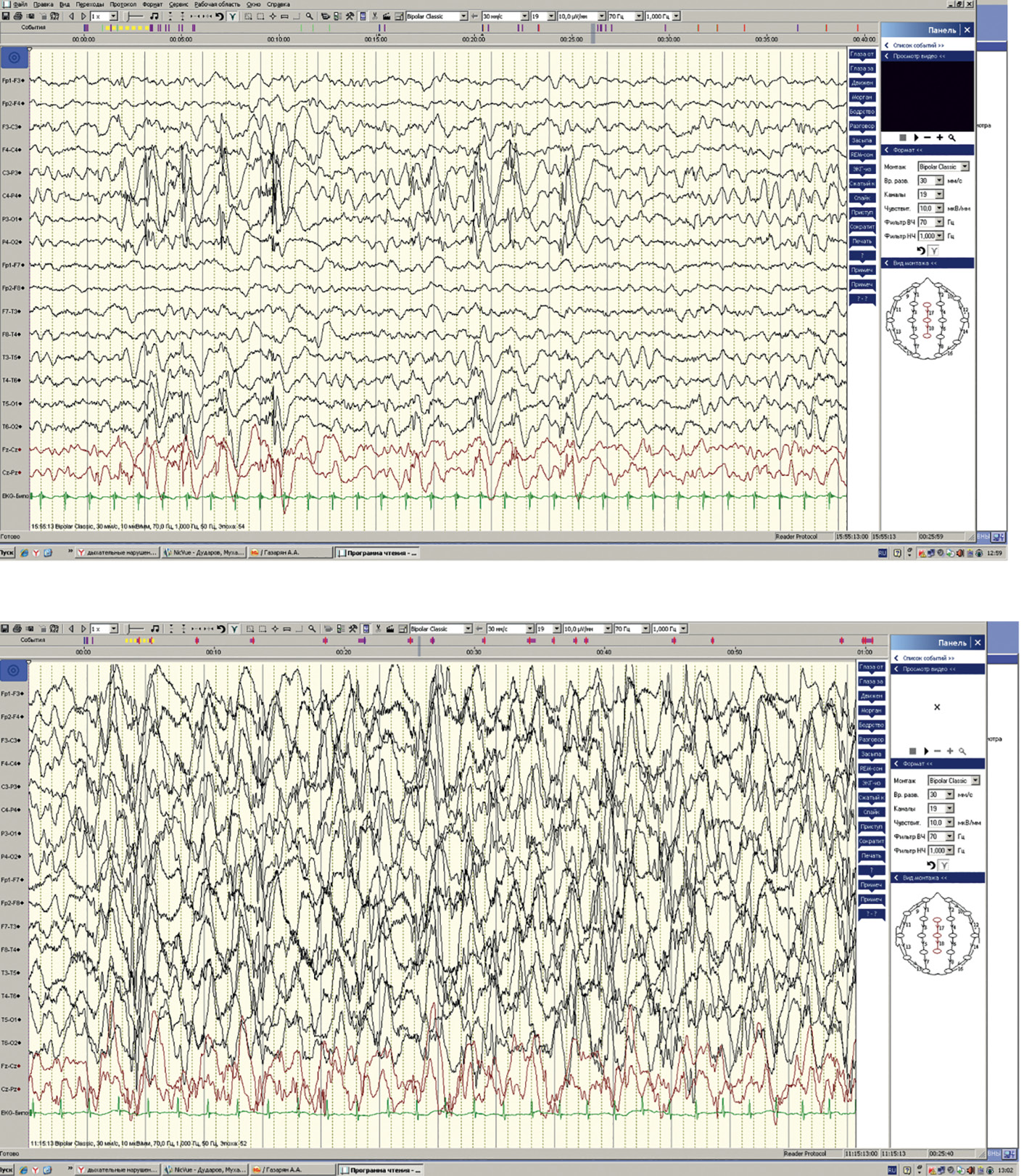 В настоящее время классическая гипсаритмия встречается достаточно редко, чаще регистрируется один из вариантов модифицированной гипсаритмии [14, 15].