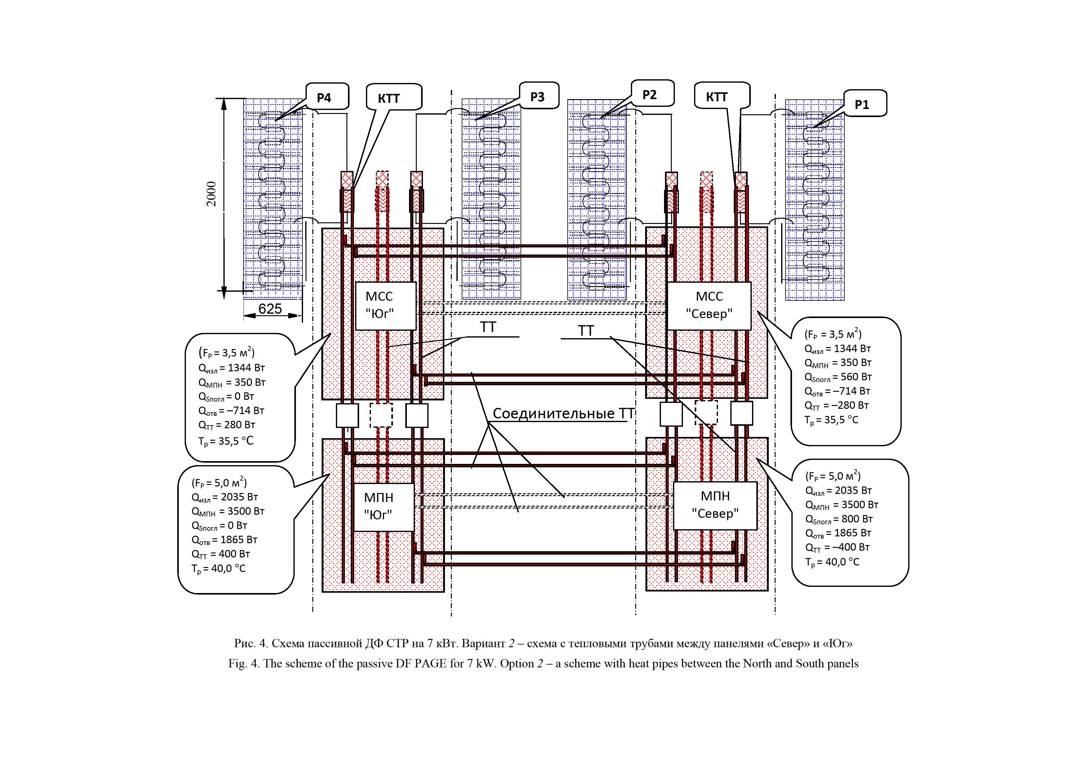 Fig. 4. The scheme of the passive DF PAGE for 7 kW. Option 2 – а scheme with heat pipes between the North and South panels