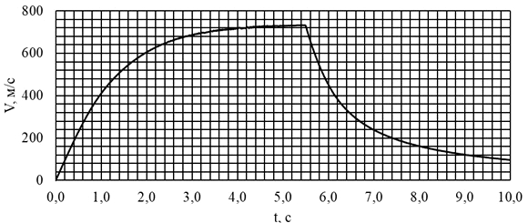 На рис. 6 приведен график, иллюстрирующий разгон двухрельсовой каретки с пятью РДТТ и ее торможение.