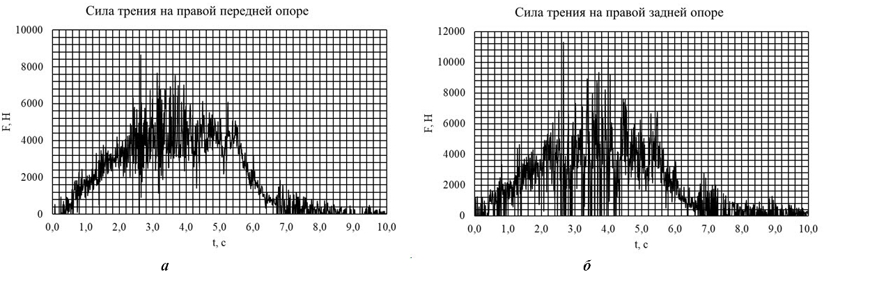 Рис. 8. Силы трения: а – на передней опоре с правой стороны каретки; б – на задней опоре с правой стороны каретки