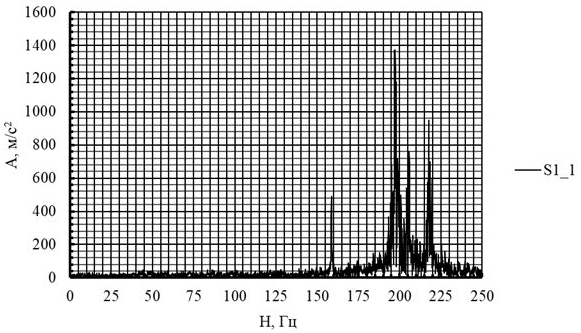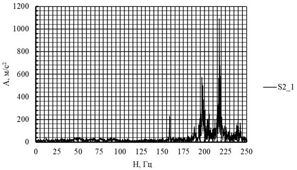 Fig. 11. Density of the spectrum of vibration accelerations of the sled supports in the vertical direction along the Y axis (S1_1)