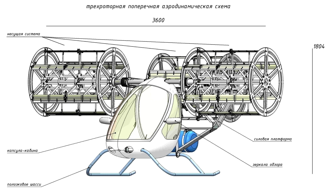 Рис. 3. Двухместное авиатранспортное средство типа «Циклолет» на основе крыльчатых движителей цилиндрического вида