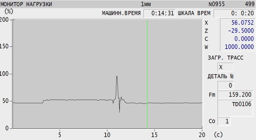 Регистрирование сил резания на станке велось посредством замены датчиков нагрузки станка на датчики, улавливающие малейшие колебания сил резания. К контроллерам станка дополнительно подключены платы для фиксирования показателей нагрузки станка в процессе проведения эксперимента.