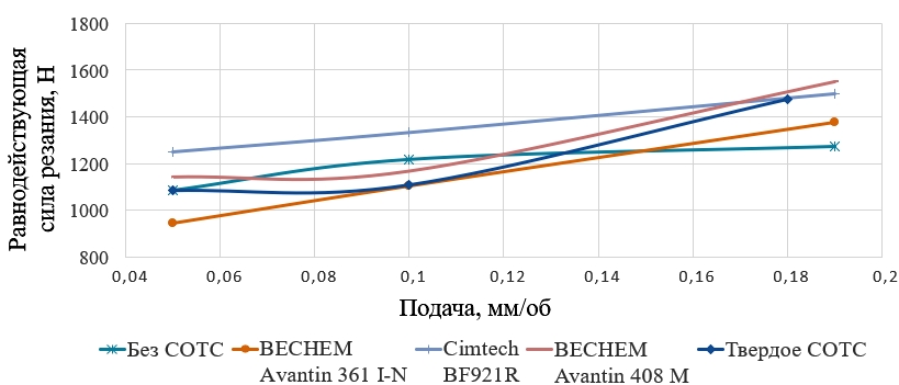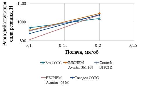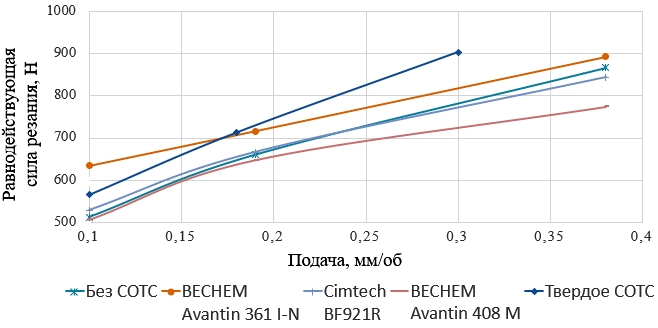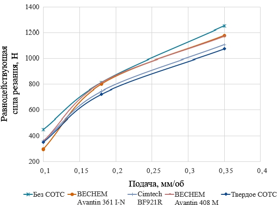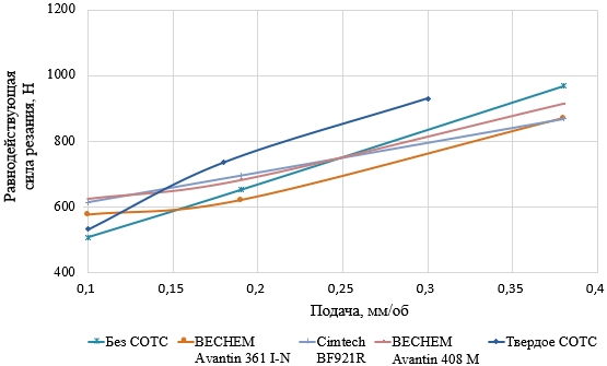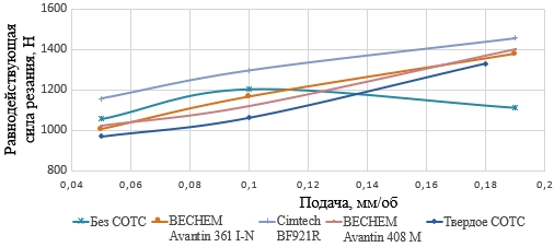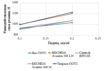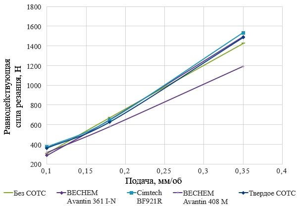 Результаты эксперимента недостаточны для формирования целостной картины влияния физико-химических параметров смазочно-охлаждающих технологических сред на процесс резания. Данные по эксперименту дополнили результатами предыдущих работ автора по влиянию СОТС на силу резания проводимых в зоне низких скоростей резания, где рассматривались отечественные марки смазочно-охлаждающих технологических сред: сульфофрезол; МР-3, ЛЗ ОЖ2.