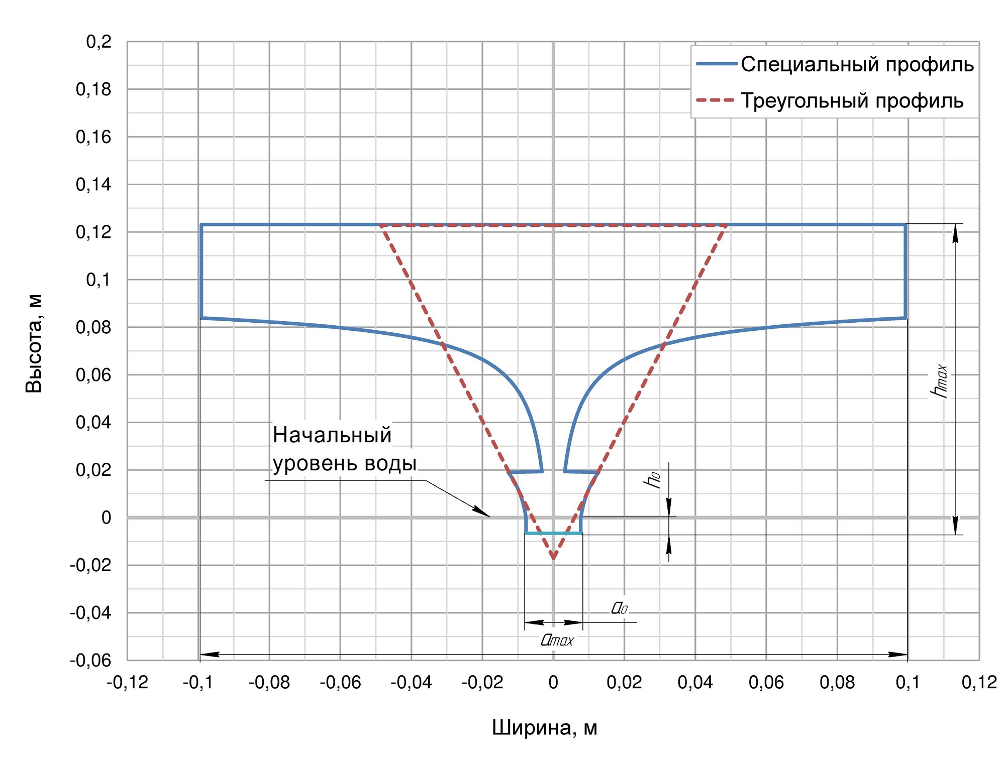 Далее рассчитываются начальные параметры: a0 – начальная ширина профиля (ширина нижней части); h0 – уровень первоначального заглубления (высота нижней части).