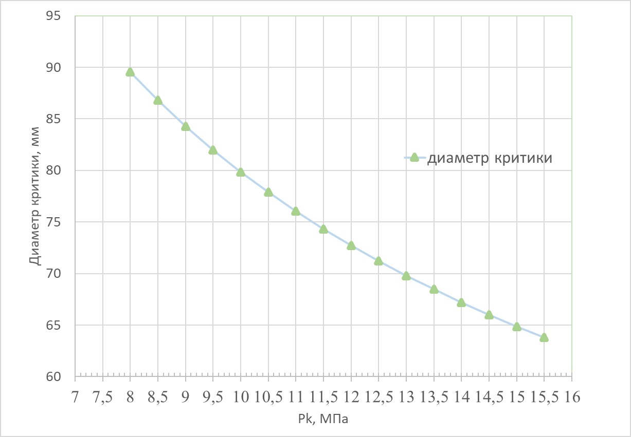 Рис. 6. Зависимость диаметра критики от давления в КС
