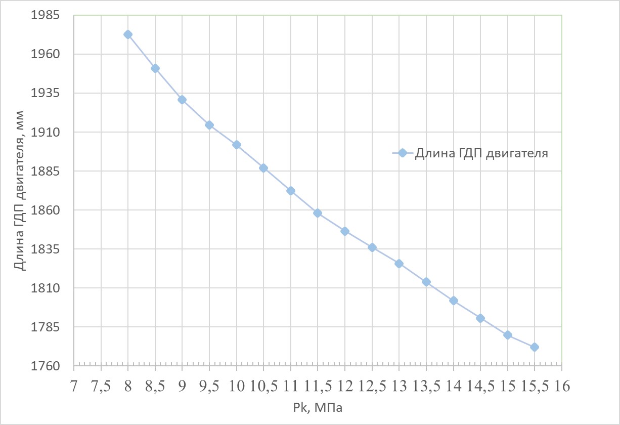 При увеличении давления в камере сгорания на величину 10,5 МПа уменьшаются габаритные размеры двигателя и длина самого двигателя.