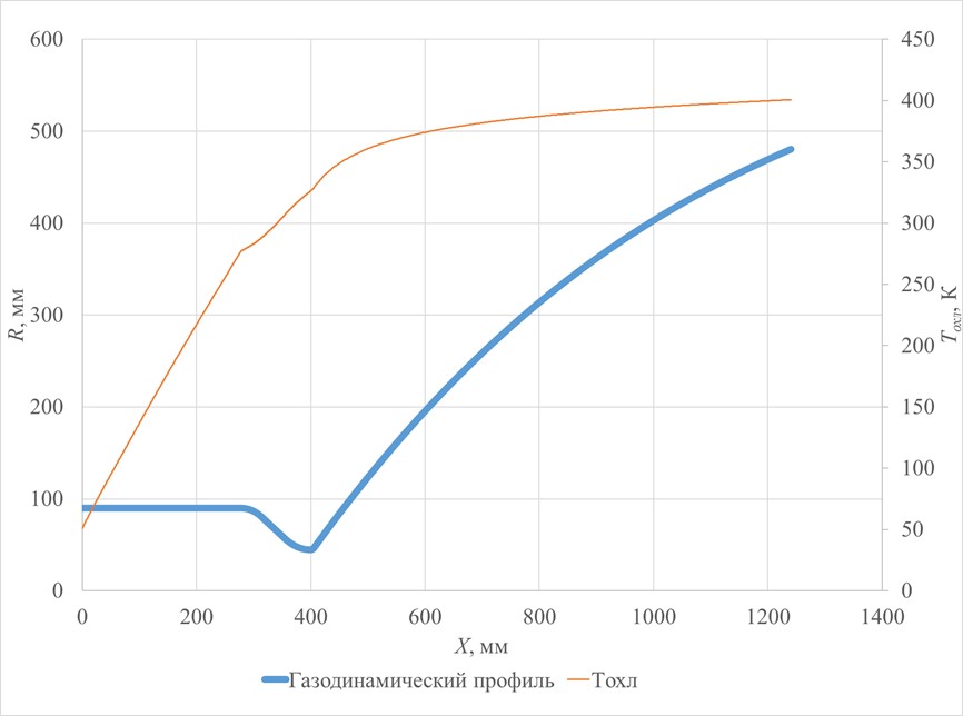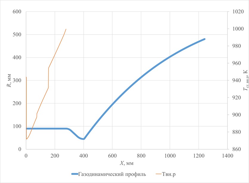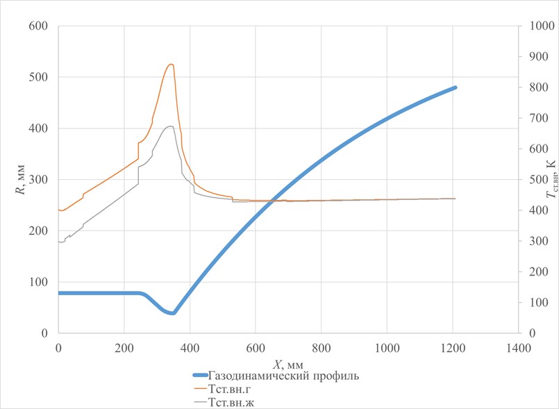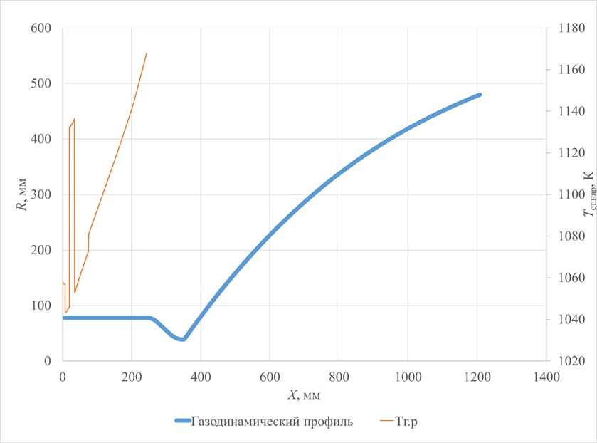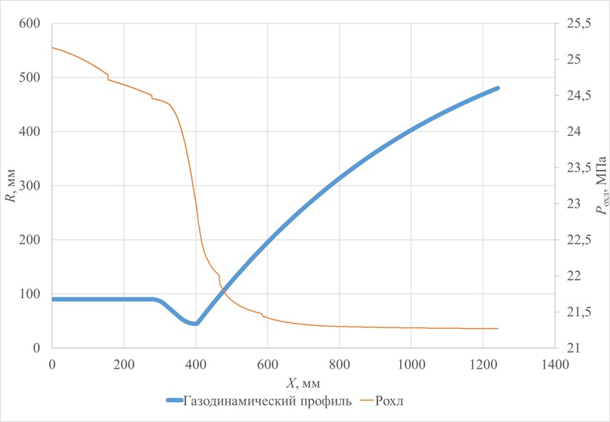 Далее будет пересчитан ГДП профиль для давления в КС 10,5 МПа и выполнен поверочный расчёт охлаждения с определением теплогидравлических параметров СО двигателя.