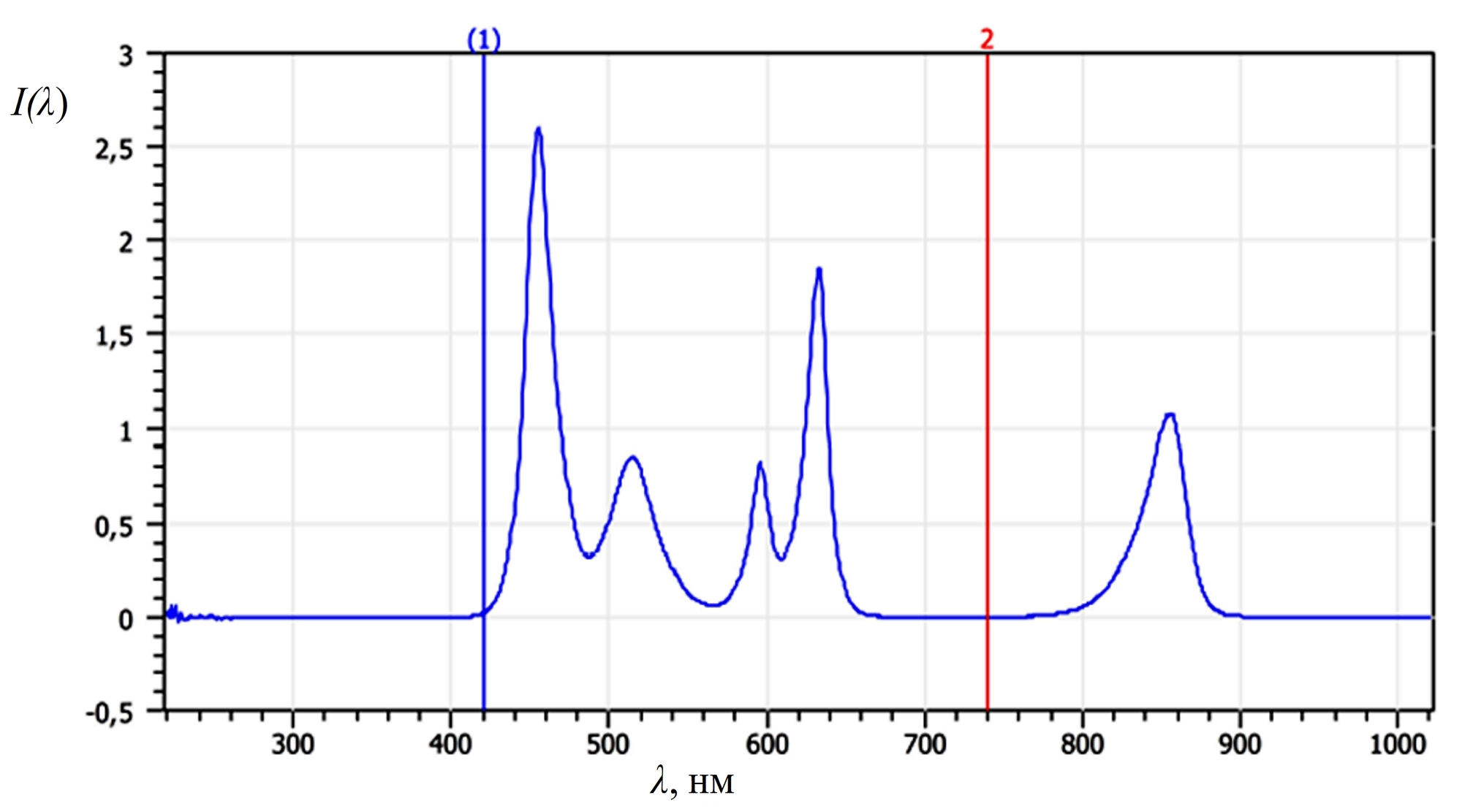 Рис. 6. Спектральное распределение экспериментальной светодиодной сборки