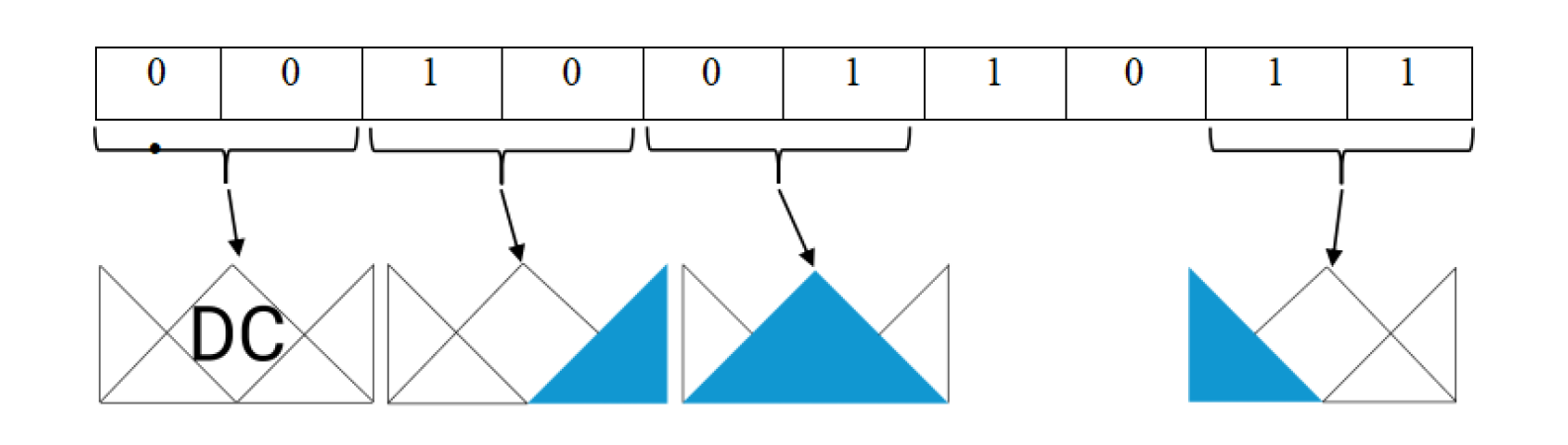 Перевод осуществляется сначала для битов, выделенных для переменных, т. е. рассматриваются каждые bt позиций в строке длиной len. При переводе стоит учитывать дополнительный терм – игнорирование, который позволяет упростить правила и саму БП в целом. А затем перевод осуществляется для последних bc битов, выделенных для класса.