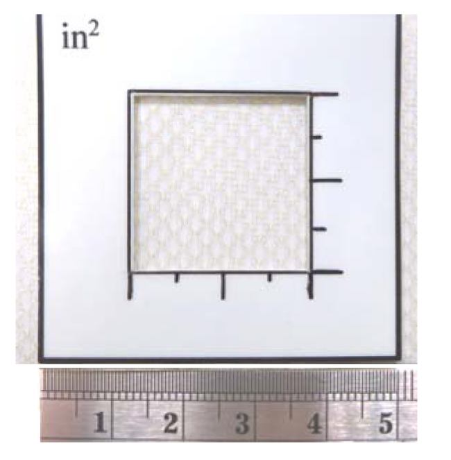 - (Этот метод не является автоматизированным, поэтому вероятная оценка натяжения сетеполотна является грубой вследствие влияния человеческого фактора при подсчете количества ячеек, кроме того данный метод является трудоемким.)