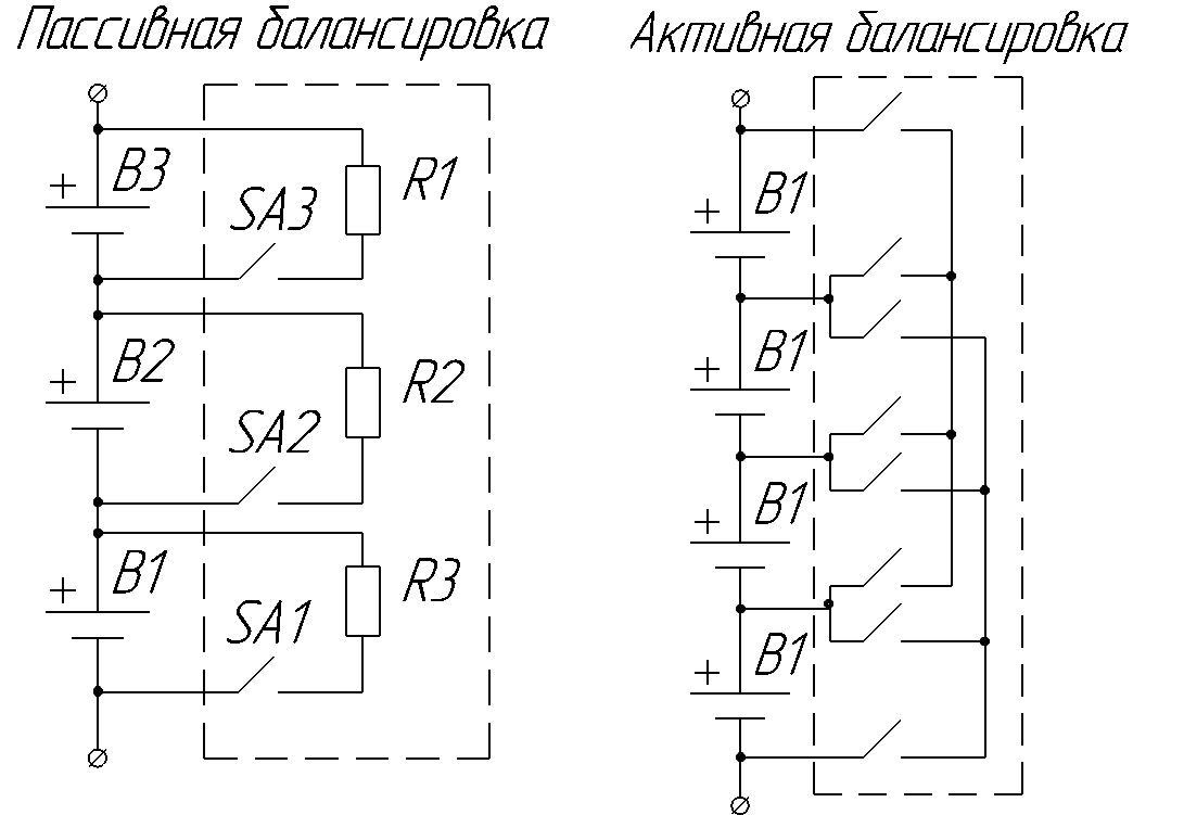 Рис. 2. Пассивная и активная балансировка