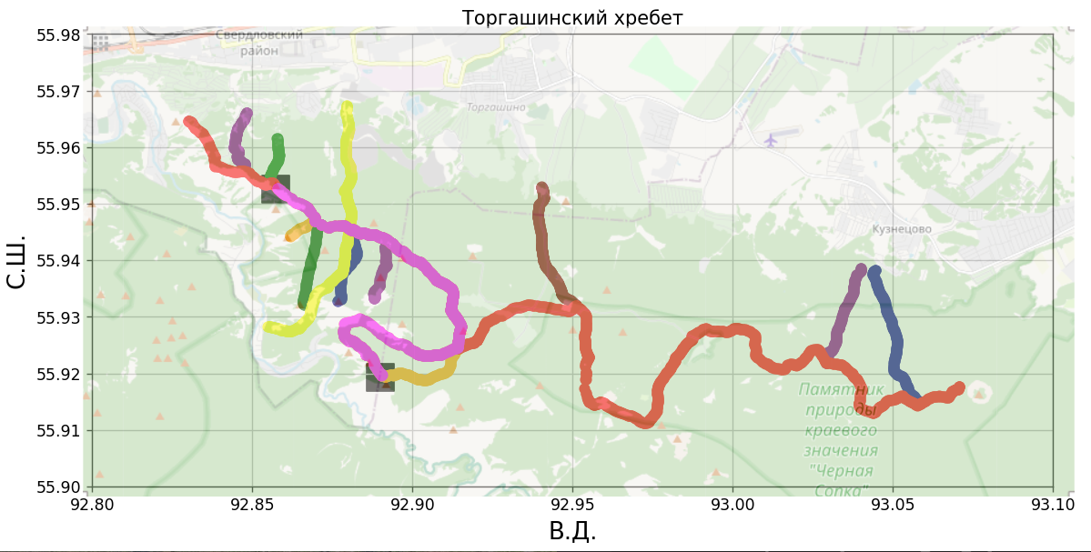 В программной реализации существует двенадцать gpx-треков (свободный текстовый формат хранения и обмена данными GPS) уже существующих маршрутов на территории Торгашинского хребта. Для того чтобы извлечь всю необходимую информацию из данных треков, применяется библиотека minidom, которая позволяет проанализировать xml-разметку и выбрать необходимую информацию [16].