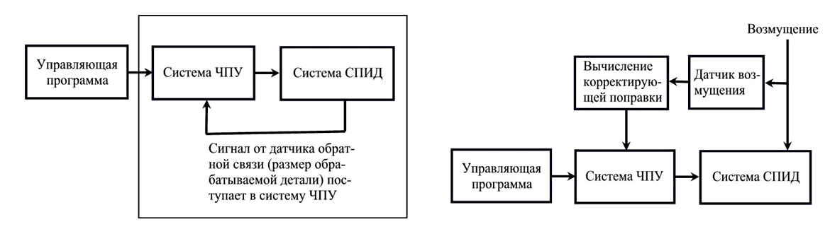 Полученные и представленные выше результаты моделирования влияния отдельных факторов на толщину остаточного полотна указывают на тот факт, что среди рассматриваемых факторов (рис. 2) не удается выделить 1–2 фактора, которые доминировали бы по степени влияния на интегральное отклонение толщины остаточного полотна, и это является основной предпосылкой для выбора наиболее подходящего метода повышения точности обработки по толщине остаточного полотна. Ниже укрупненно рассмотрены основные методы повышения точности механической обработки и обоснован выбор системы и алгоритма коррекции.