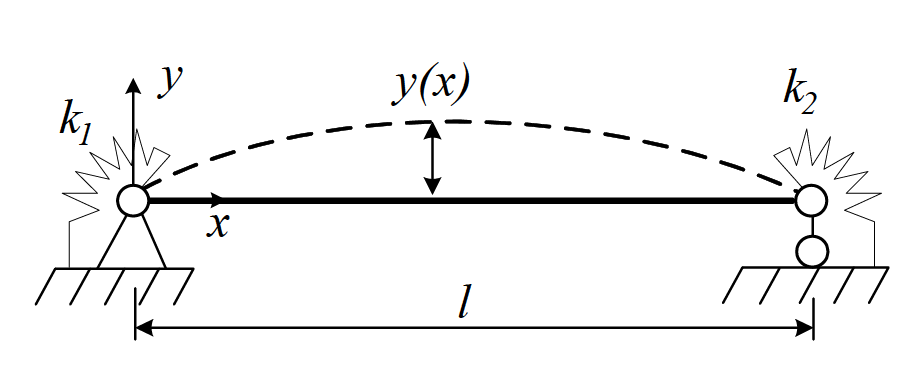Fig. 2. Flexural buckling of the beam with spring-hinged supports