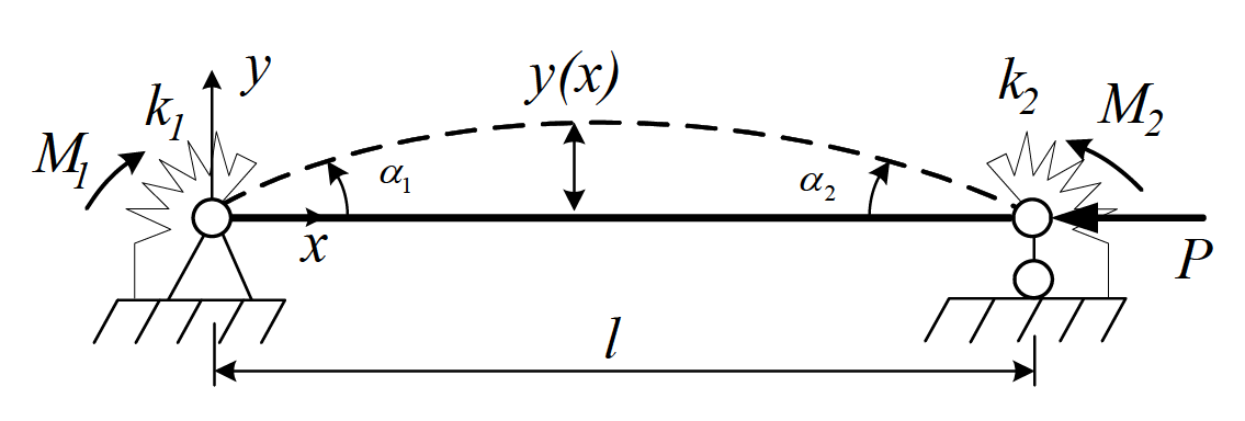Рис. 2. Изгибная потеря устойчивости балки с упругими опорами