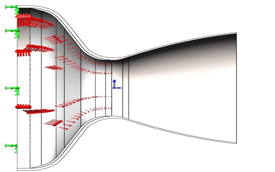 Рис. 4. Распределение нагрузок в сопле