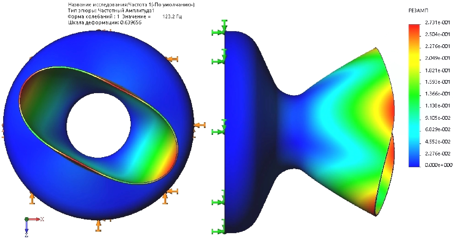 Рис. 14. Амплитуда первой формы колебаний