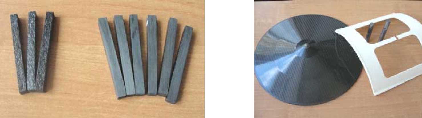 Рис. 11. Образцы для изучения высокоскоростного фрезерования композитов на основе углепластиков: а – образцы для испытаний; б – изделия