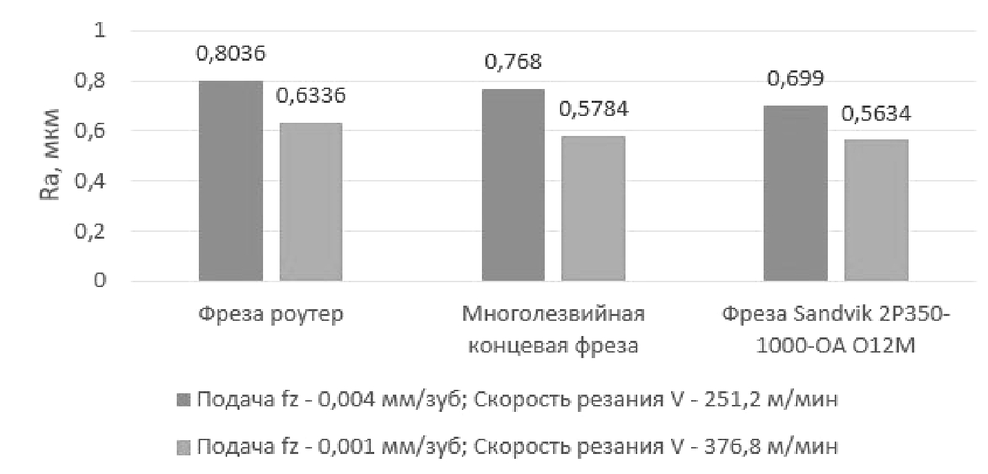 Рис. 13. Шероховатость обработанной поверхности Ra после сравнительных испытаний различными конструкциями фрез
