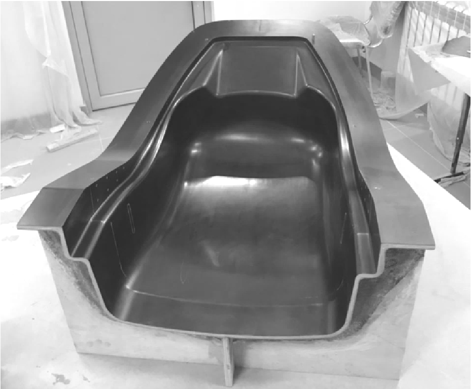 Nevertheless, it should be noted that the use of model plastic as a rigging material is promising. Infact, model plastic is a polymer composite material with dispersed filling. Polyurethanes of various brands are usually used as a binder in this material. By choosing the filler, its concentration, as well as the grade of polyurethane, it is possible to provide characteristics that meet the specified requirements of the technological process. Currently, the market presents mainly foreign brands of model plastic, which do not always meet production requirements. For example, a significant CLTE compared to carbon fiber and the presence of open cells (pores) (see the table) require additional costs for the manufacture of technological rigging. An example of manufacturing of rigging from model plastic is shown in Fig. 2