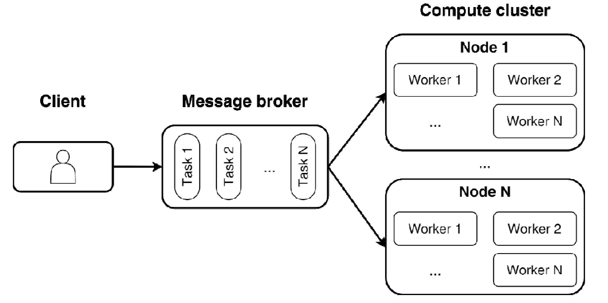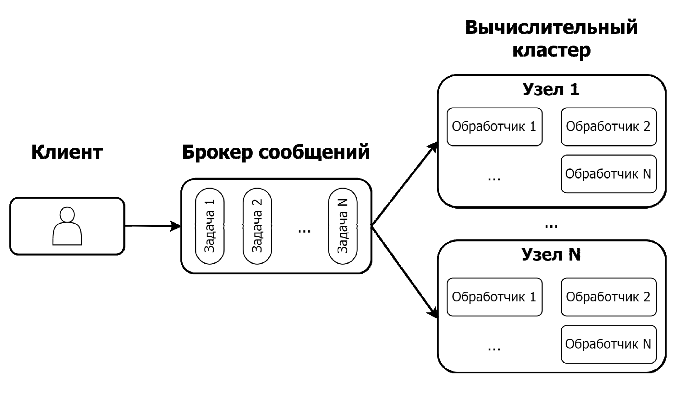 Data processing is performed using the GNetProc software package for distributed processing of network activity developed by the authors in the Go language. The software package consists of several parts: a client, a message broker, and a computing cluster (Fig. 1).