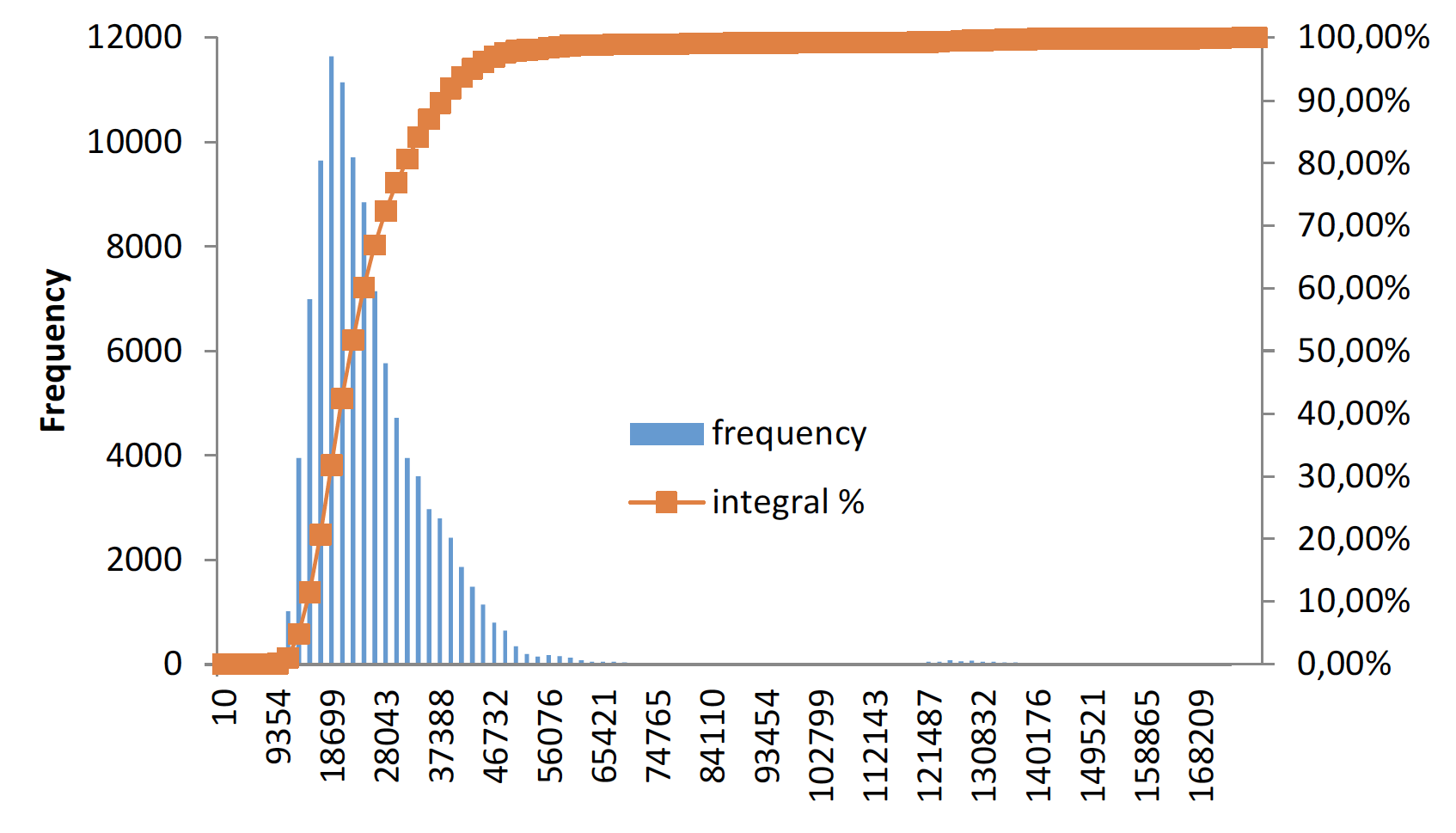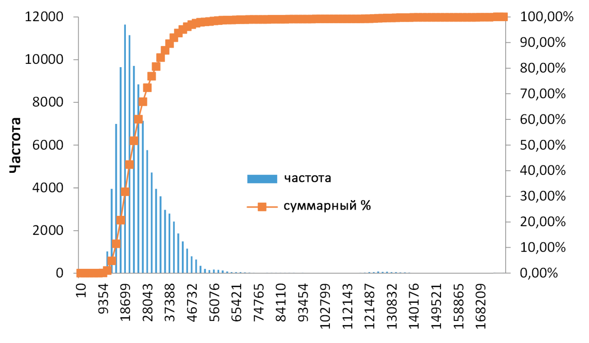 The resulting distribution has a clearly expressed right asymmetry, that meets the following condition: