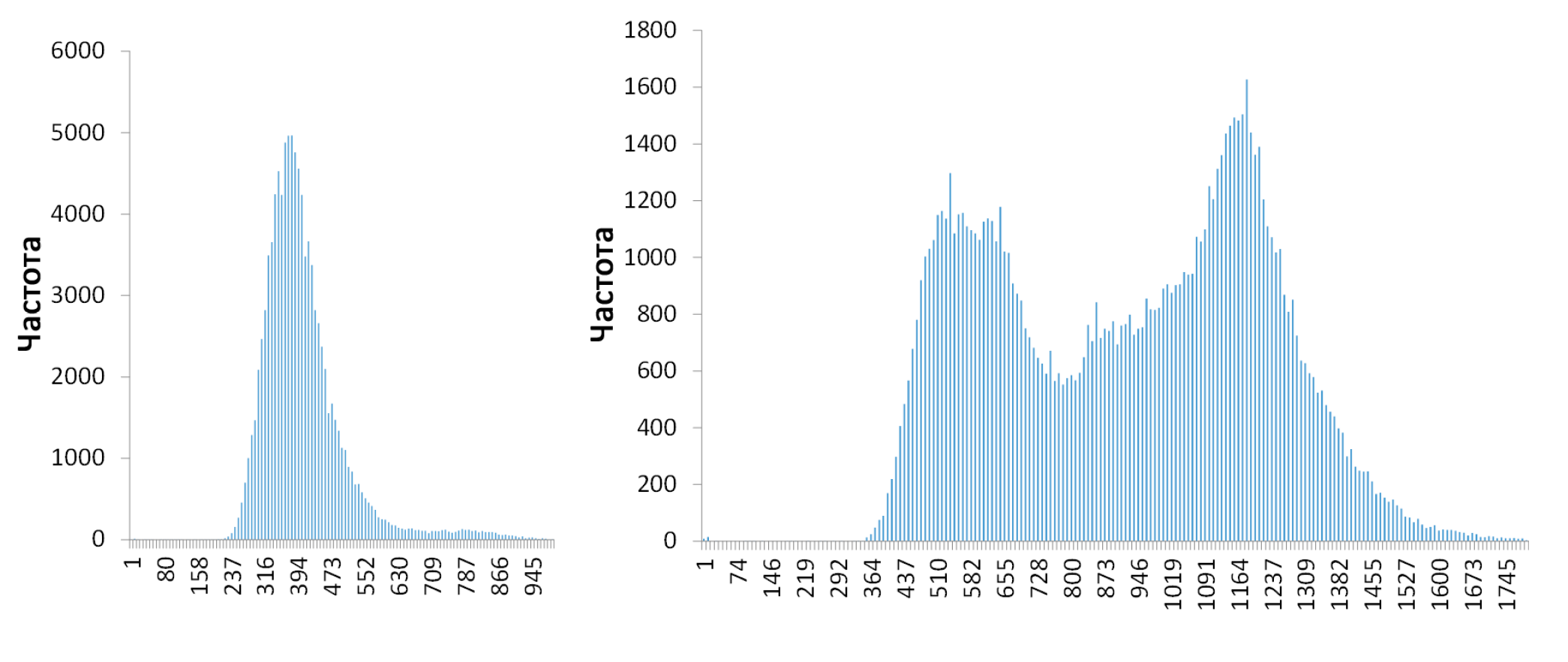 All distributions except Telnet 2022 demonstrate right asymmetry. The Telnet 2022 data set has two histogram maxima, which is due to reconfiguration of the data acquisition equipment. Figure 4 shows histograms for 2021 and 2022.