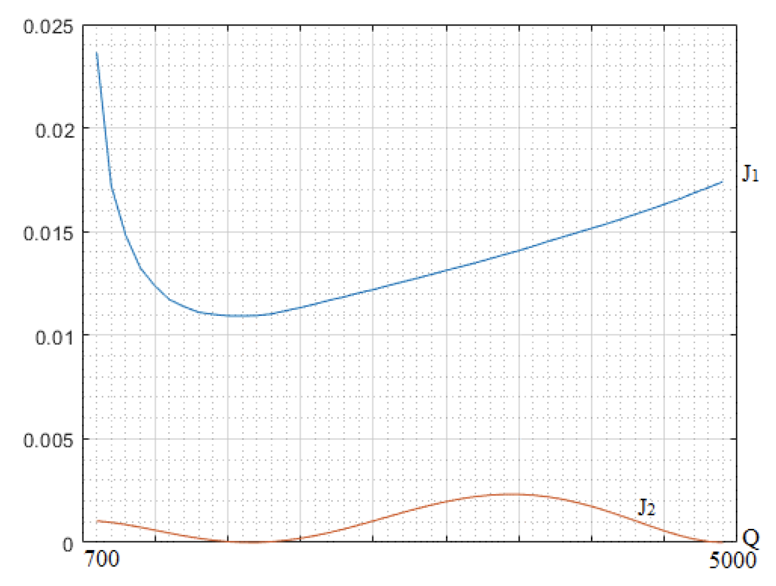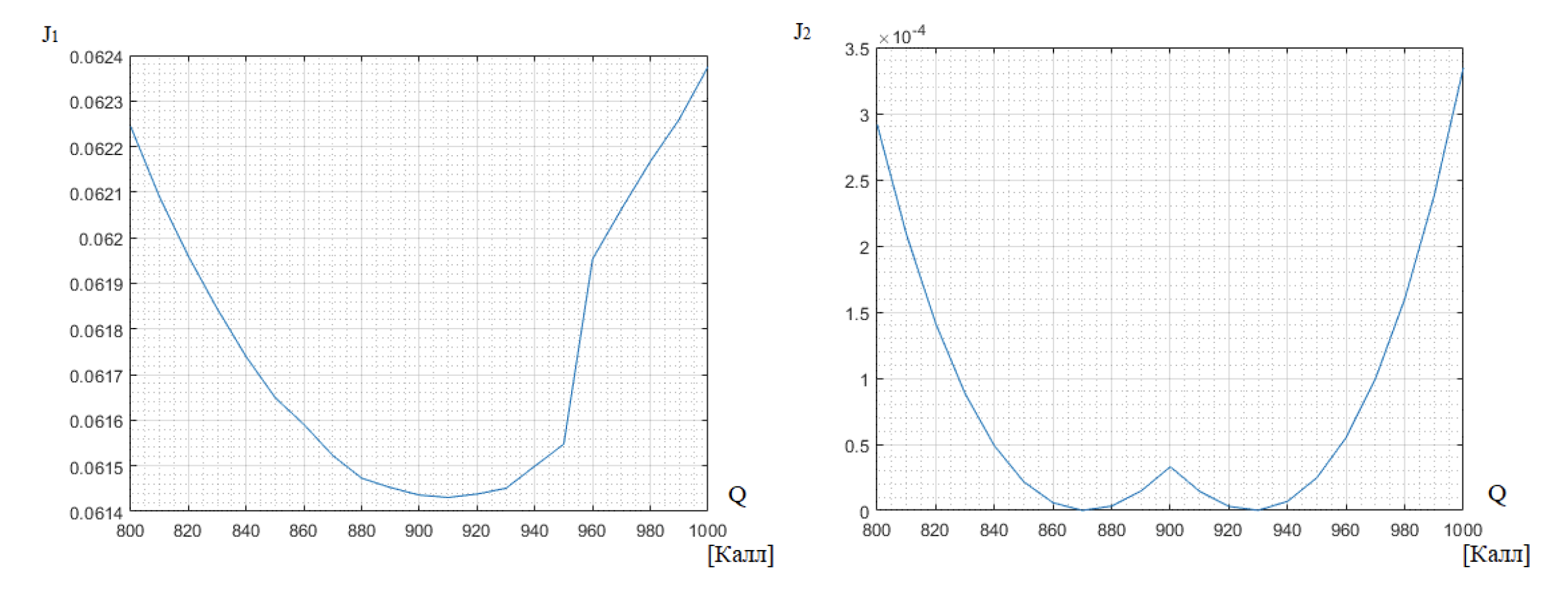 Based on the results of the table, graphs for functionals (3) and (5) were constructed (Fig. 5).