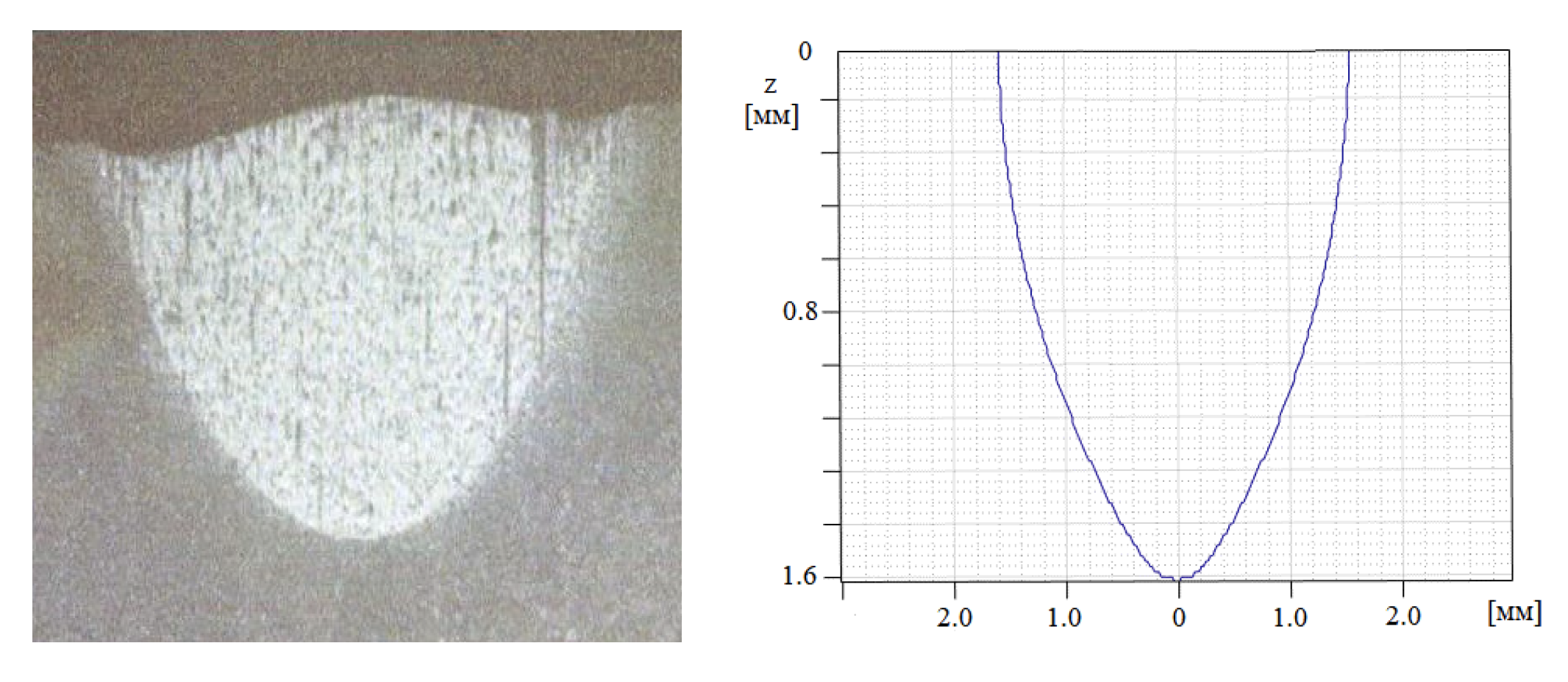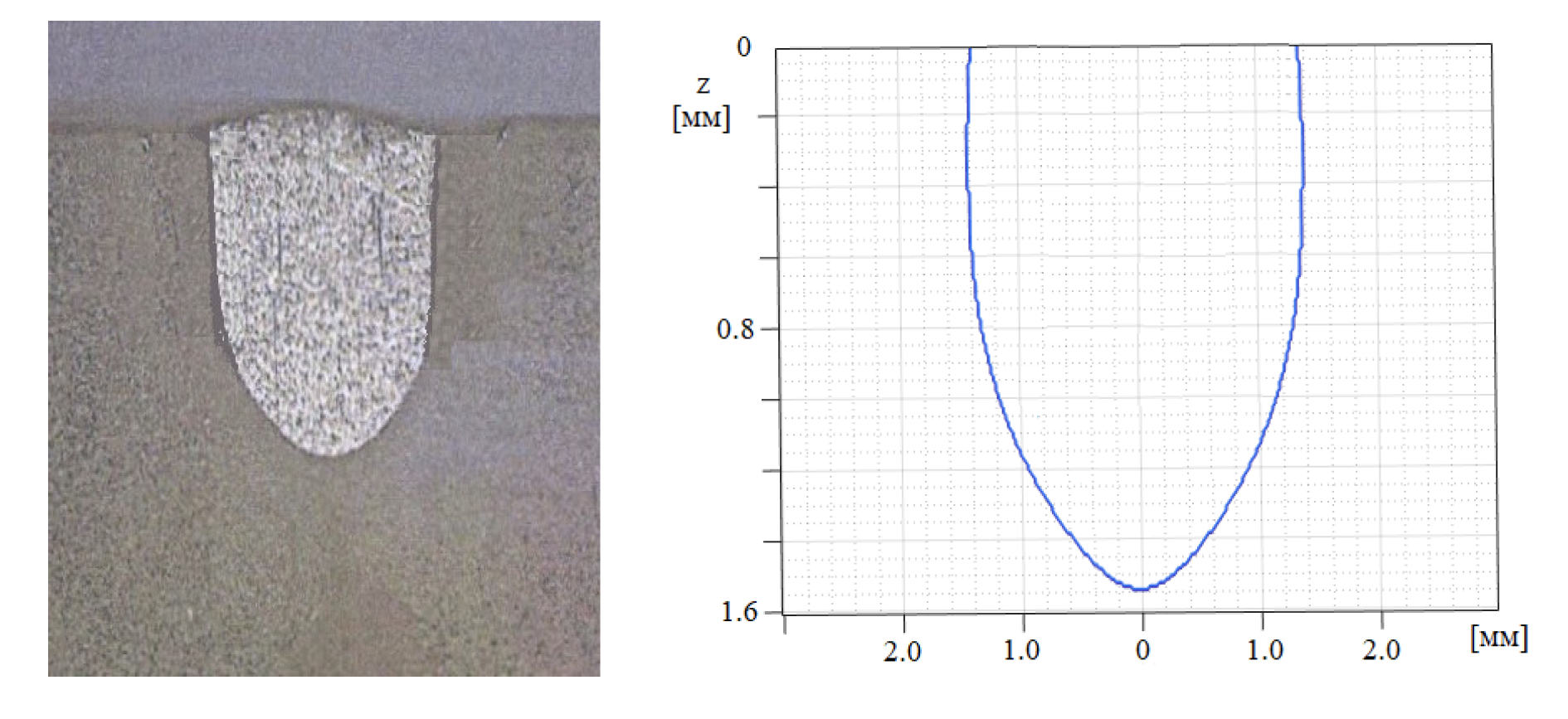 Taking into account the change in the focus position, the authors conducted an experiment with the previously proposed welding mode. Fig. 8 shows the simulation results and the shape of the section corresponding to the selected optimal welding mode.